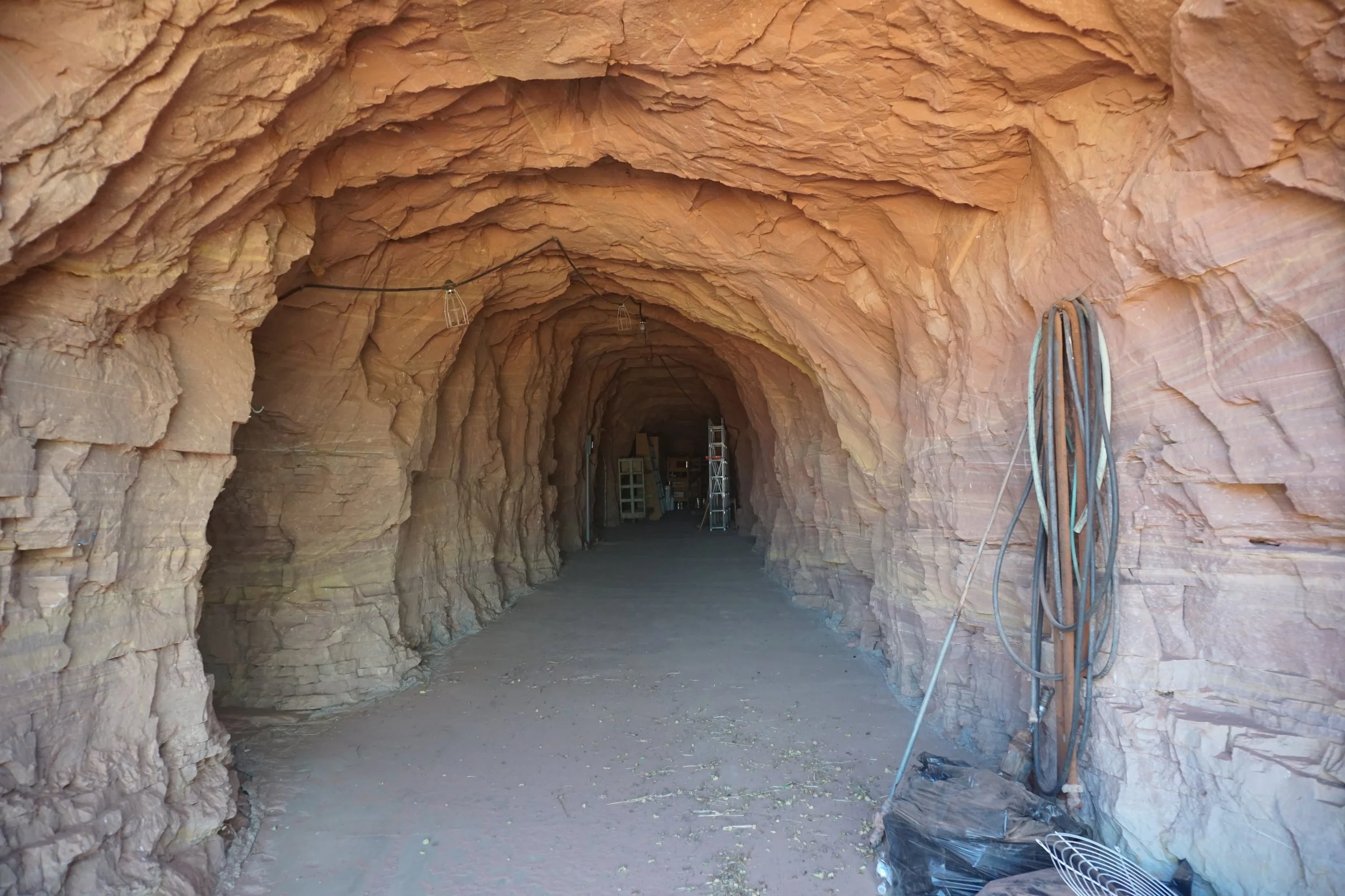 A cave dug to stock up on ressources and canned goods for the end of the world.