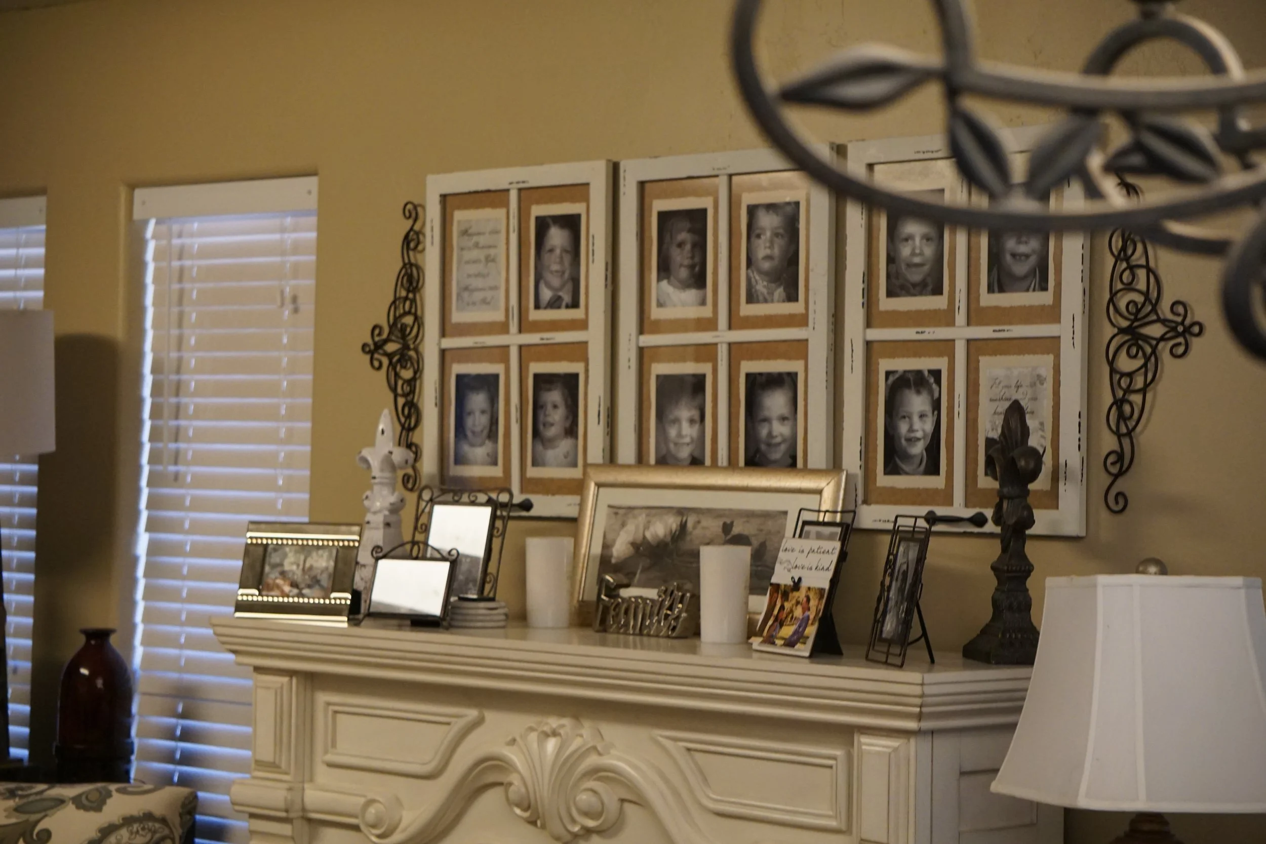 Pictures of Margaret Cooke’s children hang above the fireplace.